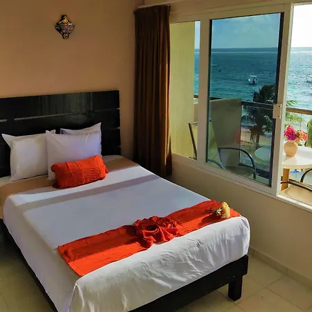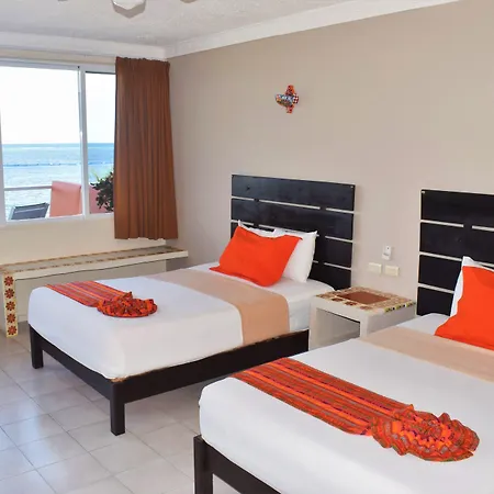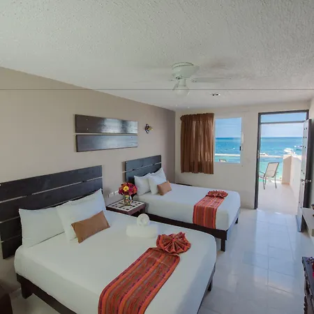 Alcune camere dell'Hacienda Morelos Beachfront Hotel sono confortevoli e hanno un balcone, un bar sulla terrazza e connessione Wi-Fi gratuita. Sono arredate con mobili confortevoli.
